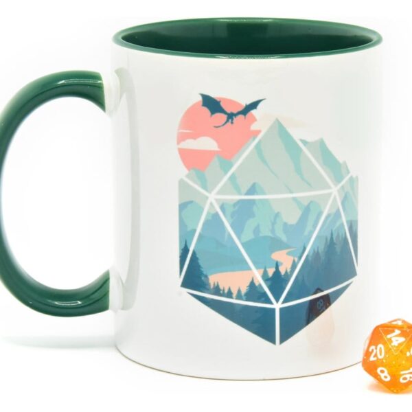 Glassstaff Gift Set Mug & Dice D20 A D20 Scene