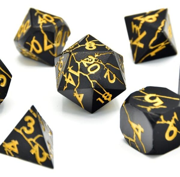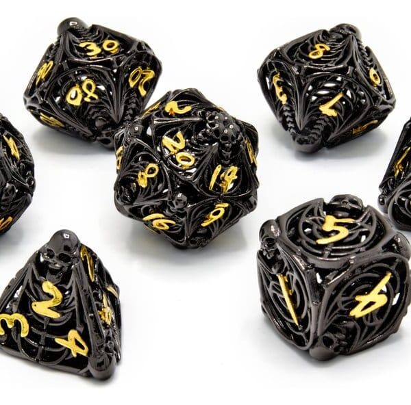 CritStones Hollow Metal Dice Set Soulreaper Gold (7)