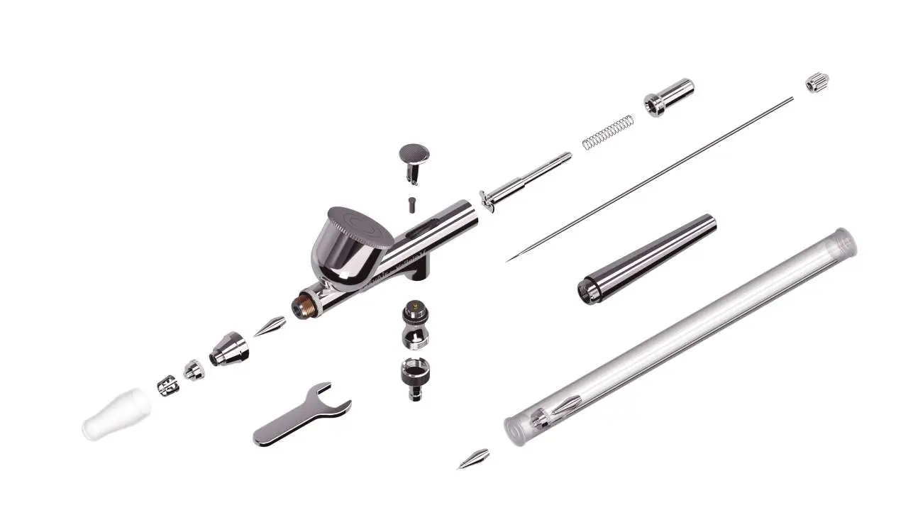 L’aerografo EasyAir è il modello standard perfetto per chi si avvicina per la prima volta alle tecniche di aerografia. Il suo design solido ed ergonomico include un sistema di alimentazione a gravità a doppia azione intuitivo e indipendente. L’ugello flottante consente un facile smontaggio e pulizia. Il set include un ago/ugello da 0,3, un serbatoio da 9 ml e un raccordo rapido per il tubo. Questo è un modello che stupirà i professionisti e accenderà senza dubbio la passione per l’aerografia negli appassionati. È un aerografo affidabile, preciso e di alta qualità che diventerà una parte indispensabile di tutti i loro progetti. Il suo design semplice e razionale lo rende estremamente facile da pulire, sia che si tratti di una pulizia di base dovuta al cambio della vernice utilizzata sul modello, sia di una pulizia completa e accurata degli elementi e delle parti dell’aerografo.