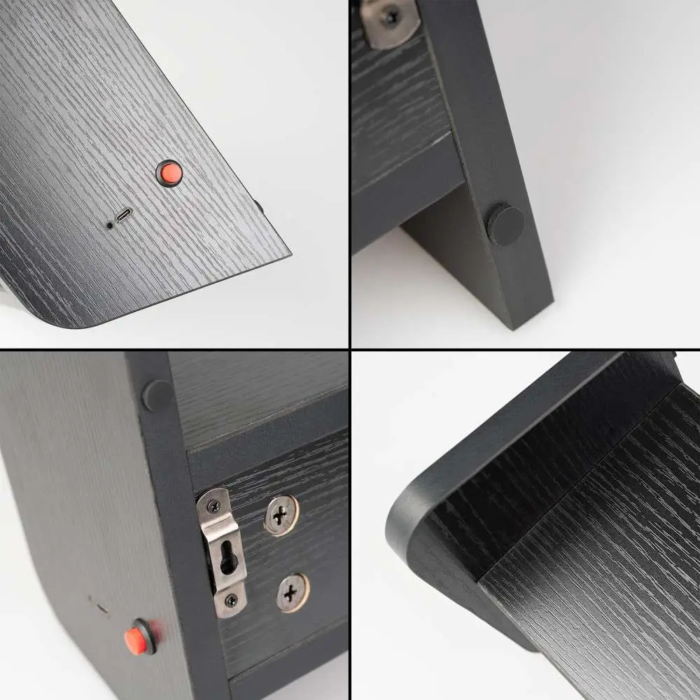 Lampada ispirata alla parte superiore delle macchine Arcade. È realizzata in MDF e acrilato. Include una modalità di illuminazione con un unico pulsante di controllo situato sul lato della lampada. Ha due ancoraggi sul retro per essere appesa facilmente e le pareti laterali sono leggermente rialzate per poter essere utilizzate come mensola. Funziona con un cavo USB di tipo C – Ingresso 5V DC 1A (incluso) e, inoltre, dispone di una batteria interna ricaricabile agli ioni di litio da 2000 mAh 3,7V con un’autonomia di 6 ore e un tempo massimo di ricarica di 3 ore e 30 minuti. Include due tasselli e due viti per l’installazione. Dimensioni: 34 x 22,5 x 14 cm.