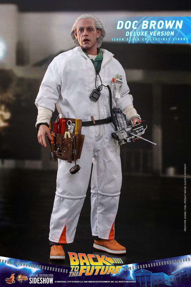 Sophisticatedly crafted based on the appearance of Christopher Lloyd as Dr. Emmett Brown in Back to The Future, the highly-accurate figure features a newly painted head sculpt with astonishing likeness; finely tailored protective jumpsuit comes with pouch and bag to store his equipment; extremely wide variety of detailed accessories including the signature remote to control the time machine, clipboard, stopwatch, climate graph, portable printer, multiple tools that can be found in his tool bag and a figure stand.