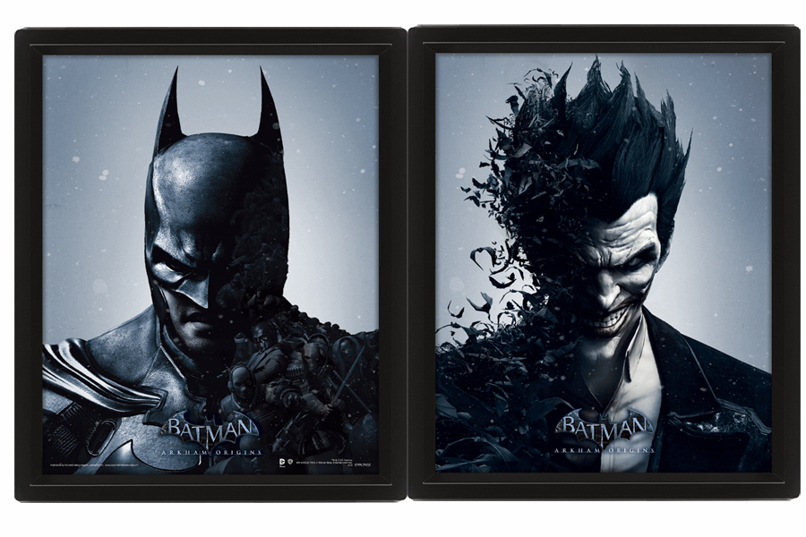 BATMAN ARKHAM ORIGINS – BATMAN/JOKER – Quadro Doppia Immagine 3D Lenticular 22x27cm Con Cornice in Legno
