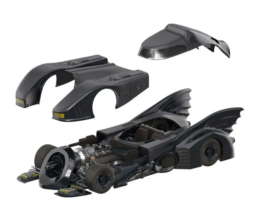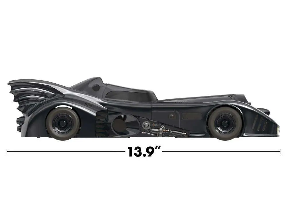 Lunga oltre 13“ e larga 5”, questa Batmobile è ispirata alla sua apparizione nel film Batman del 1989 ed è ricca di dettagli accurati ed utilizza vernice metallizzata. Il formidabile esterno del veicolo è dotato di una ventola a turbina che ruota, di ruote e di una serie di dettagli scolpiti, tra cui carcasse di mitragliatrici, rampini, carenature ad ali di pipistrello e altro ancora.
