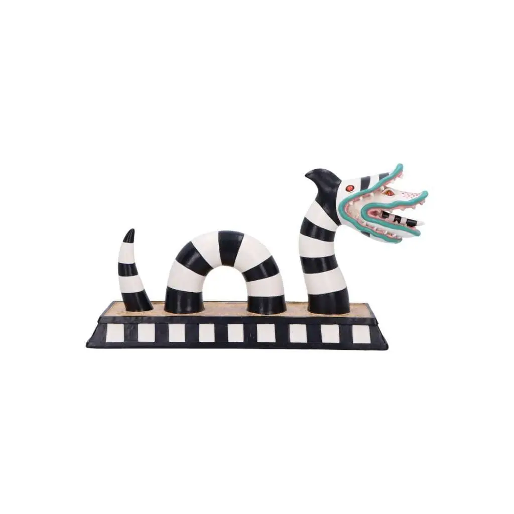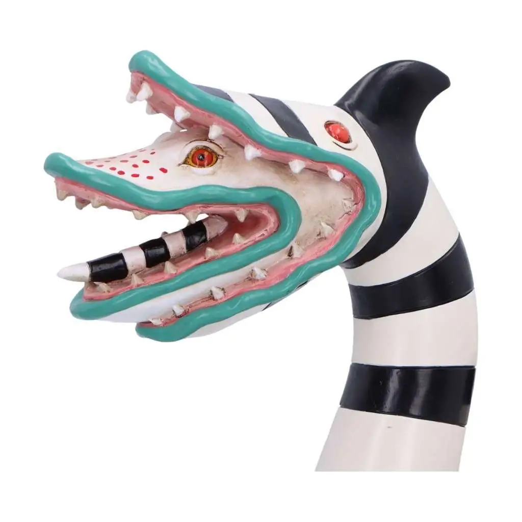 Questa statuetta con licenza ufficiale è un oggetto da collezione altamente dettagliato che raffigura l’iconica creatura Verme delle Sabbie del classico film del 1988 Beetlejuice, perfetta per i fan dell’universo dark fantasy di Tim Burton. La statuetta presenta texture dipinte a mano con sculture dettagliate che catturano il Verme delle Sabbie a due teste. Alta 15 cm, è dotata di una robusta base espositiva per il posizionamento su mensole e scrivanie.