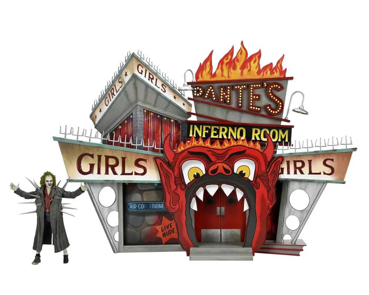 Dal primo “Beetlejuice”, del 1988, arriva questo diorama deluxe di Neca! Nella scatola troverete una action figure Ultimate di Beetlejuice con il classico trench (altezza circa 20 cm) e il necessario per creare l’ambientazione del Dante’s Inferno Room (altezza diorama circa 45 cm). Il diorama è anche dotato di luci Led che rendono il tutto ancora più spettacolare!