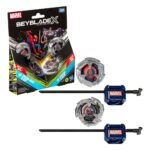 Experience the thrill of the next generation of Beyblade stadiums, launchers and tops: Beyblade X with the Beyblade X Marvel Collab Spider-Man 3-60F and Venom 3-80N Multipack Set which includes 2 right-spinning tops and 2 launchers (Beystadium required, sold separately). Launch right into battle or reconfigure the interchangeable blade, ratchet, and bit of tops in this Marvel Collab Multipack with those of other Beyblade X tops (sold separately) to create your own unsurpassable Bey. Beyblade X features the X-Celerator Gear System innovation to level-up your game. When the gear of a Beyblade X top engages the rail of the Beystadium arena, it can super-accelerate into an Xtreme Dash rocketing it around the stadium. Bladers launch their tops into fierce clashes against their opponentโs scoring points with each spin โ first to score 4 points wins. Hasbro Beyblade toys with authentic Takara Tomy die-cast metal tops make great kids gifts for boys and girls ages 8 and up.