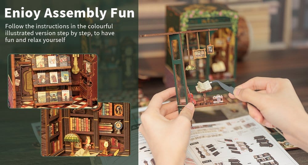 CuteBee Book Nooks are more than decorative shelf pieces – they are immersive creative experiences for kids, families, and kidults, recommended for ages 12 and up. Designed as detailed 3D wooden puzzles, they offer a calm, focused building process that encourages screen-free, stress-reducing me-time.