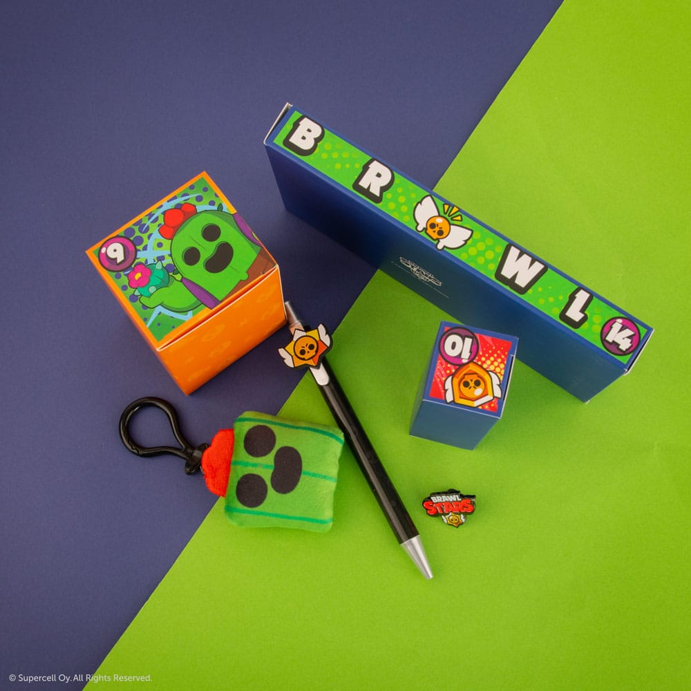 Officially licensed advent calendar with 24 Brawl Stars themed gift items (Mini keyring plush, pin, memo pad, magnet, lenticular bookmark, stickers, pen, stamp, socks, tote bag, woven patch, pencil, squishy, lenticular sticker, eraser, acrylic clip, acrylic ornament, lanyard, string bracelet, washi tape, drawstring bag, foldable water bottle, sharpener, cable holder)