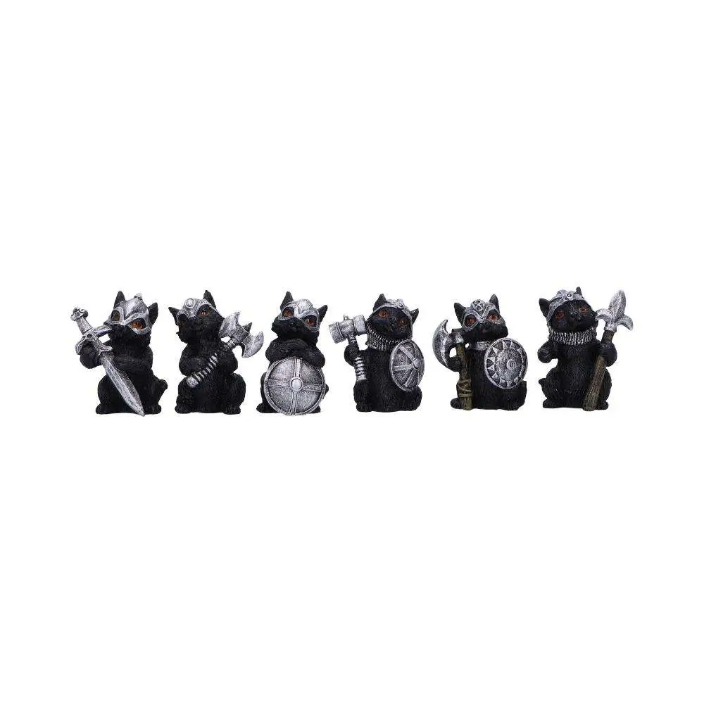 Cat Crusaders (set da 6) Cat Crusaders (set da 6) Feroci guerrieri con un tocco carino! The Cat Crusaders (set da 6) è la miscela perfetta di fascino e forza, riunendo l’adorabilità dei gatti con il potere feroce dei guerrieri leggendari. Ognuna di queste sei figurine finemente scolpite, realizzate in resina nera di alta qualità, presenta sorprendenti occhi arancioni che contrastano magnificamente con la loro pelliccia scura. La finitura spazzolata a secco esalta ogni dettaglio, donando ad ogni gatto un aspetto realistico e unico. Con elmi e armi d’argento, questi gatti guerrieri emanano un’aria di forza e presenza. L’inclusione di due distintive armi con finitura in legno marrone, una potente ascia e una lancia affilata, aggiunge autenticità a questo potente set, rendendolo irresistibile per gli appassionati di oggetti da collezione sia fantasy che a tema animale.