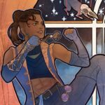 Three characters, each varied in personality, abilities, and history, stand connected by one player and the threads of fate woven across Exandria. To the left of the print, graceful Keyleth of the Air Ashari sits beneath the boughs of a tree, revered as a leader across multiple ages. To the right, the fun-scary Laudna puppeteers her strange familiar Paté against the moonlit backdrop of Whitestone. Below, Beauregard Lionett strikes a battle stance, ready to use her quick wit and quicker fists to challenge her foes. This intricate composition features incredible details from throughout Marisha Ray’s time at the Critical Role table, giving fans a chance to relive the excitement and action of 10 years of storytelling.