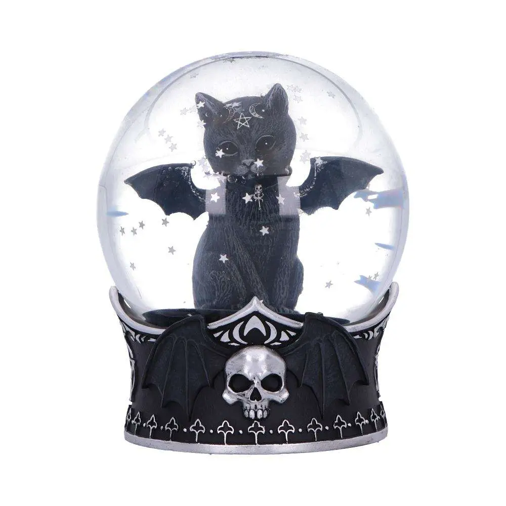 Globo di neve in stile gotico raffigurante Malpuss, il felino occulto alato della nostra esclusiva collezione Cult Cuties. Una base in resina dipinta a mano, un globo di vetro riempito di glitter scintillanti a forma di stella e Malpuss seduto al suo interno. Il globo di neve è confezionato in una scatola ufficiale con marchio Cult Cutie, dotata di un imballaggio interno protettivo, perfetta come regalo o da esporre. Ideale per gli amanti dell’arredamento gotico, del dark fantasy, dei collezionisti di statuette alternative e degli ammiratori dell’arte ispirata all’occulto.