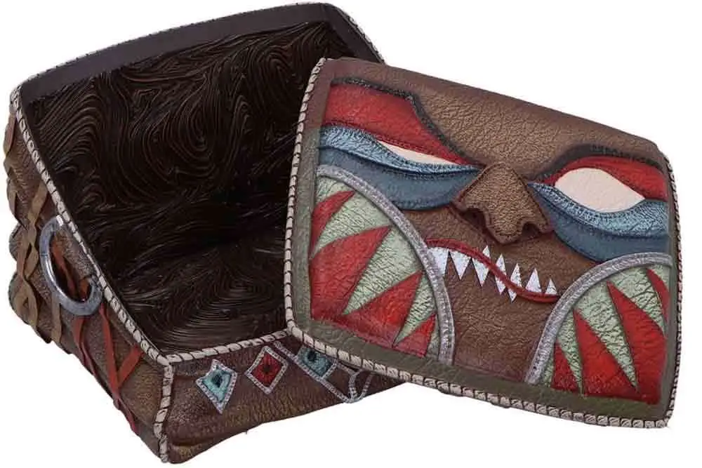 Realizzata in resina di alta qualità, questa scatola vanta una splendida texture e una finitura dipinta a mano che dà vita al mistico oggetto. Il coperchio a doppia faccia si solleva per rivelare uno scomparto nascosto, perfetto per riporre i dadi o qualsiasi altro piccolo tesoro. Il design intricato cattura l’essenza del mondo fantastico del gioco, rendendolo un pezzo da esposizione straordinario per ogni appassionato di D&D.