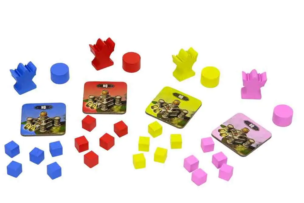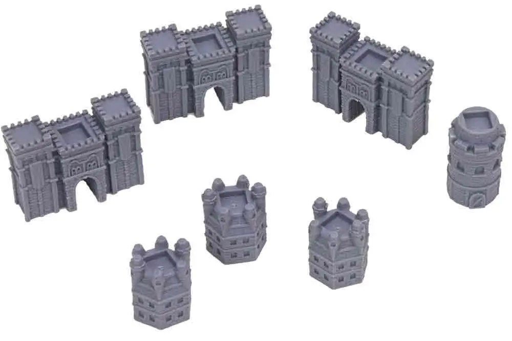 Quando piazzi gli edifici, posizionerai anche i tuoi cubi influenza per indicare il controllo. Questo include anche bastioni speciali, porte e torri di guardia, rappresentati da miniature con spazi per i tuoi cubi, permettendoti di vedere la città crescere in tre dimensioni!