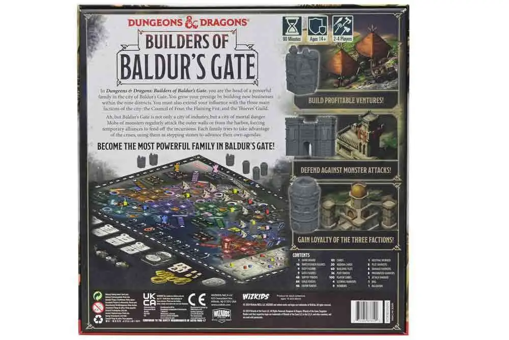 In Dungeons & Dragons: Builders of Baldur’s Gate, un gioco di costruzione cittadina ideato dal celebre designer Matthew Dunstan, sei a capo di una potente famiglia nella leggendaria città. Accresci il tuo prestigio costruendo nuove attività nei nove distretti, sia come una grande rete unificata, sia distribuendoti su tutto il territorio cittadino. Dovrai anche estendere la tua influenza presso le tre fazioni principali della città: il Consiglio dei Quattro, i Pugni Fiammeggianti e la Gilda dei Ladri.
