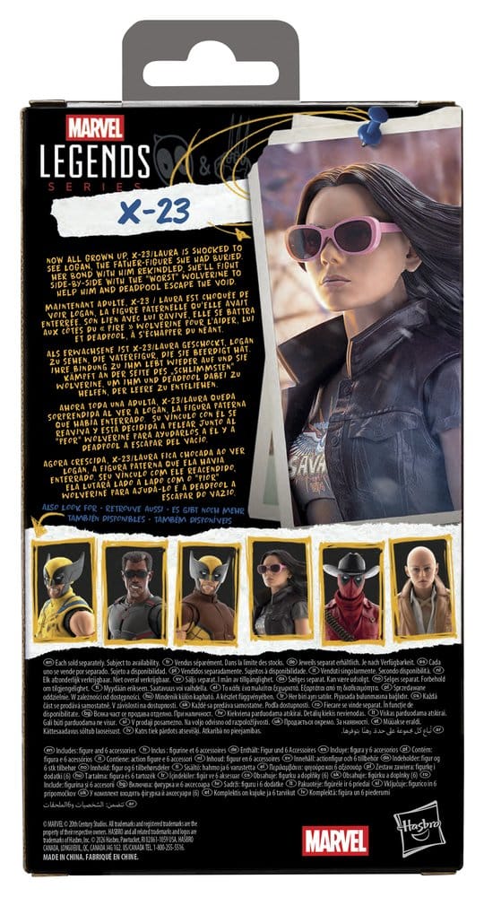 Bring the excitement and wonder of the Marvel Universe to your collection with this Hasbro Marvel Legends X-23 action figure! This collectible 6-inch scale Marvel figure is detailed to look like the character’s appearance in Marvel Studios’ Deadpool & Wolverine. X-23 figure is fully articulated with premium design and poseable head, arms, and legs. Marvel action figure set comes with 6 accessories, including alternate head and hands to display her with or without claws and sunglasses. Hasbro Marvel action figures’ 6 inch scale make them great for displaying in fans’ collections. Reimagine movie-inspired scenes on your shelf with Marvel Legends action figures and Marvel collectibles.