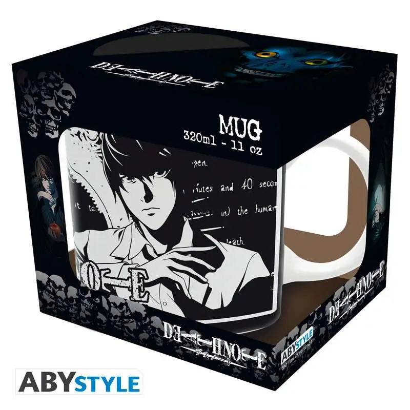Due brillanti studenti delle superiori, ognuno con un oscuro segreto. Uno è un killer con il suo Death Note soprannominato Kira, l’altro è il miglior detective del mondo che indaga sul caso. Riscopri la storia di Light e L con questa splendida tazza Death Note di ABYstyle!
