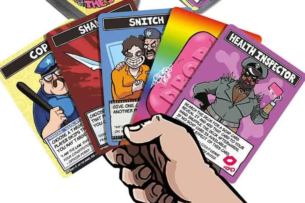 Don’t Drop The Soap è un gioco di carte con umorismo dark, dal ritmo incalzante, una patata bollente ambientata in una prigione. In questo party game non ci sono vincitori, ma solo perdenti. Assumerete il ruolo di detenuti che cercheranno a tutti i costi di non giocare una carta Sapone… Le vostre armi migliori per essere al sicuro? Bluff, colpi bassi e tradimento!