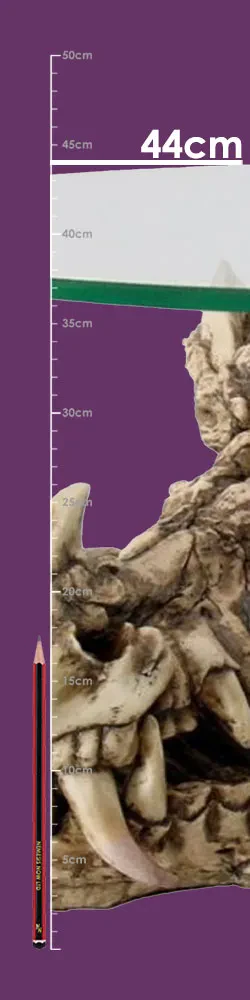 Trame ossee frastagliate, corna feroci e denti affilati come rasoi, il tutto fuso in resina di alta qualità per una finitura sorprendente, realistica e durevole.