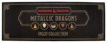 This limited edition set includes Gold, Silver, Bronze, Copper, and Brass dragons, each represented by its own intricately detailed metal ingot. Every piece features a double-sided design with richly detailed artwork inspired by classic D&D lore, giving the set a striking display.