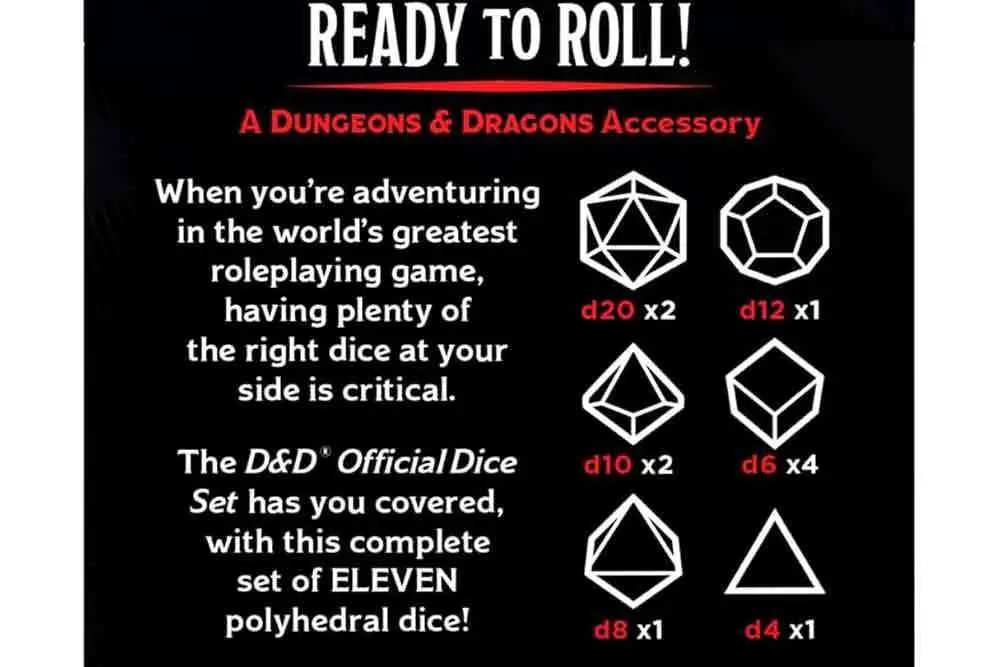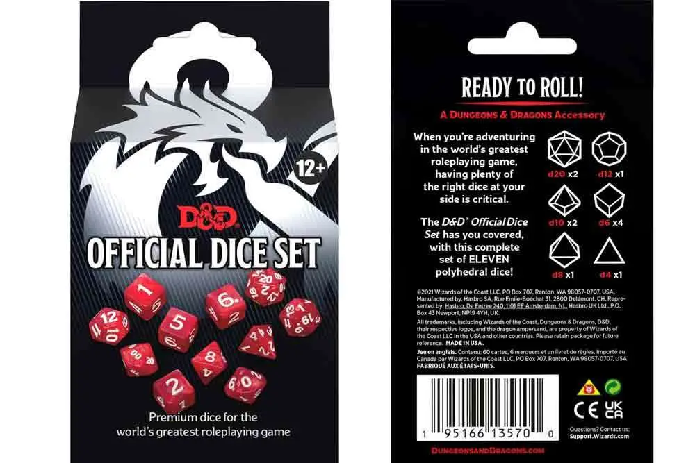 Quando si tratta di avventurarsi nel gioco di ruolo più famoso del mondo, è fondamentale avere con sé i dadi giusti. Sia che stiate esplorando giungle, navigando per mari o navigando per frontiere selvagge, questo Set Ufficiale di Dadi di D&D vi aiuterà a farvi strada. Il set di dadi ufficiali di D&D vi copre con questo set completo di undici dadi poliedrici!
