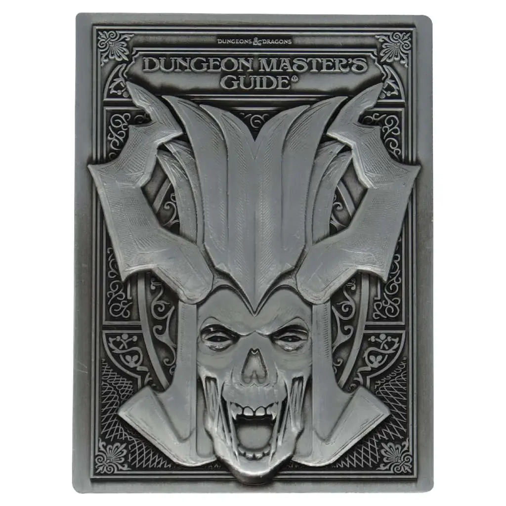 Un lingotto di metallo cesellato che riproduce il fronte e il retro dell'edizione da collezione della Guida del Dungeon Master di Dungeons & Dragons Quinta Edizione. Confezionato in una splendida scatola regalo insieme a un espositore, questa lingotto è prodotto in edizione limitata e numerata