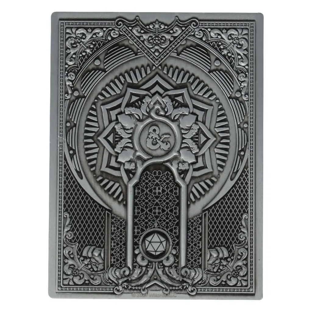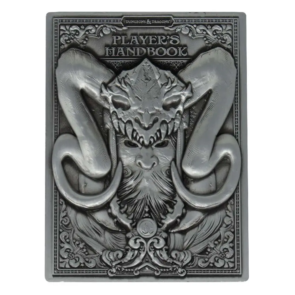 Un lingotto di metallo cesellato che riproduce il fronte e il retro dell'edizione da collezione del Manuale del Giocatore di Dungeons & Dragons Quinta Edizione. Confezionato in una splendida scatola regalo insieme a un espositore, questa lingotto è prodotto in edizione limitata e numerata