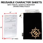 The sheets are made of acrylic and are to be used with dry erase markers (a set is included) and come in a handy and soft drawstring pouch with dividers that separate and protect the individual sheets during travel and storage.