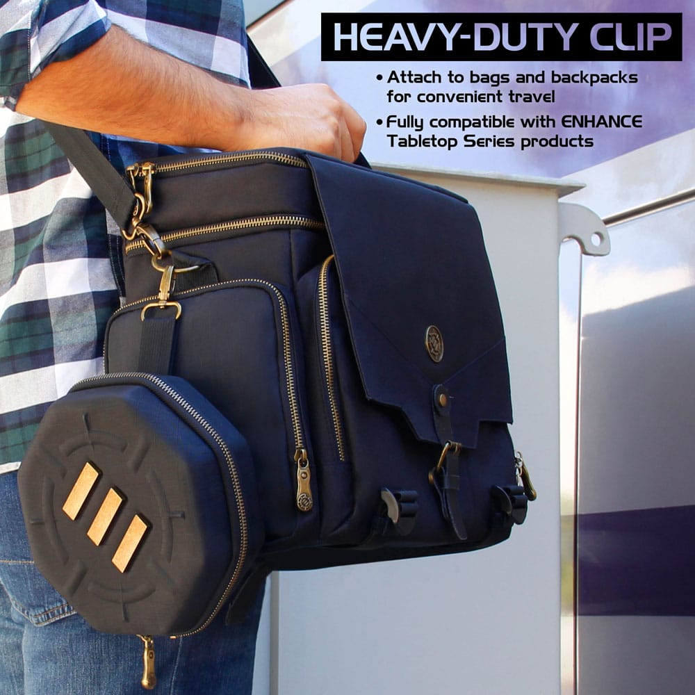 ENHANCE Tabletop Dice Case – Equipped with heavy duty zippers, scratch-resistant lining, and a large soft-lined dice rolling tray with large wall. The ENHANCE Dice Storage Case is the perfect addition to your collection of RPG travel accessories. It is actually two products in one, with one half safely storing up to 150 dice and the other functioning as a large dice tray that can be passed around the gaming table.