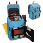 PORTABLE AND STYLISH BACKPACK with side access opening , rain cover , luggage handle slot plus room for all your MTG cards , Card Deck box , Pokemon Card Box , YuGiOh Deck Box , Graded Card and More