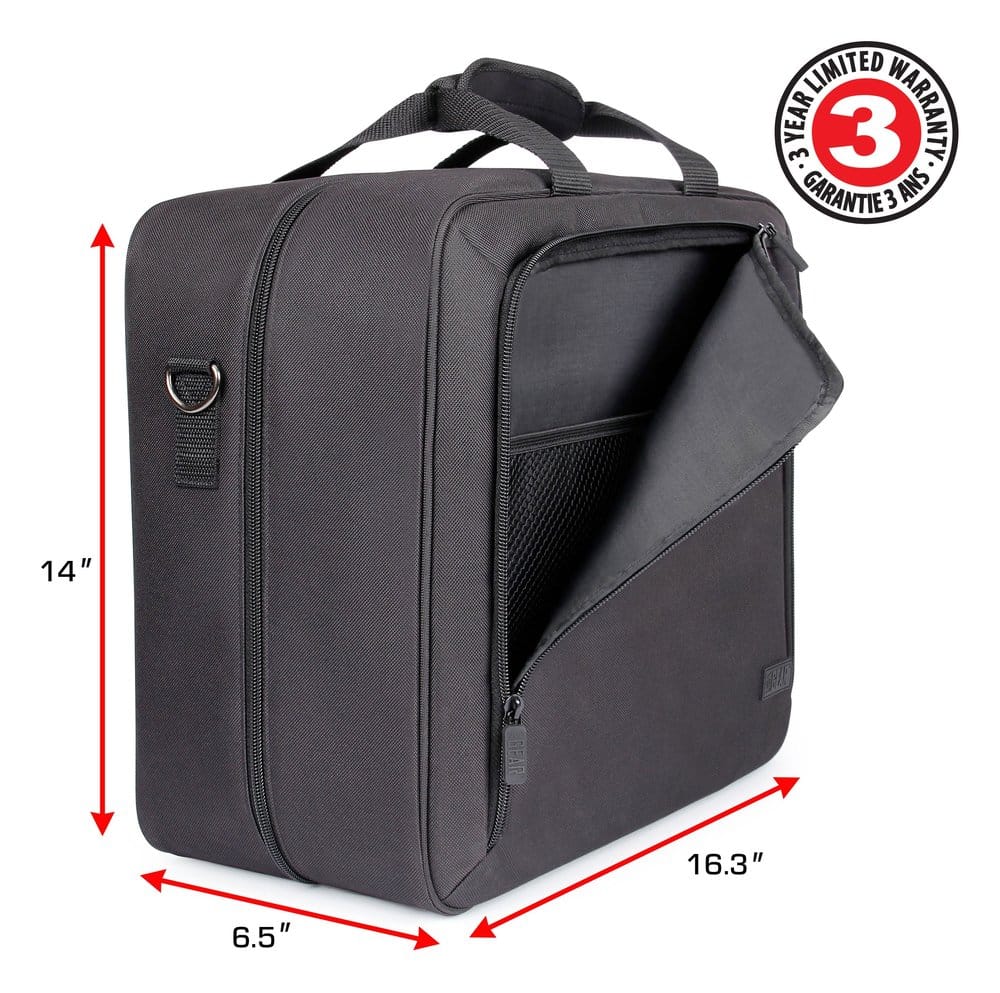 43,2 cm x 35,6 cm x 20,3 cmThe USA Gear S23 travel case offers customizable, unparalleled protection for your Xbox console and accessories. – Padded, scratch-resistant interior with bi-fold design – Customizable compartments for headsets, cables, games, and controllers – Two security straps to hold the console in place – Durable, water-resistant RipStop nylon exterior – Heavy-duty carrying handle and removable shoulder strap – External Dimensions: 43,2 cm x 35,6 cm x 20,3 cm- Interior Dimensions: 40,6 x 31,7 x 19,7 cm