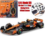 Kit di montaggio Bburago per realizzare il modello in scala 1:24. Include 45 pezzi dettagliati da assemblare con cura. Ogni componente è progettato per riprodurre fedelmente l’iconica monoposto McLaren della stagione F1 2024, offrendo massima precisione. Il kit include anche la parte superiore con il casco del grandissimo pilota Lando Norris.