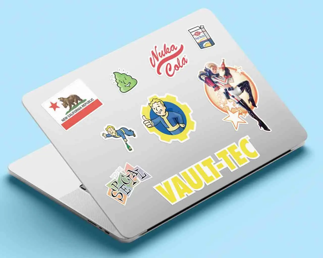 Appiccicali in faccia a quei ghoul! Questo set da quattro fogli di tech decals è il modo perfetto per personalizzare il tuo laptop, la console, le borracce o persino il tuo frigorifero Nuka-Cola. Questi adesivi in vinile riutilizzabili ti permettono di aggiungere un tocco di stile post-apocalittico a qualsiasi superficie che abbia bisogno di un po’ di personalità da Wasteland.