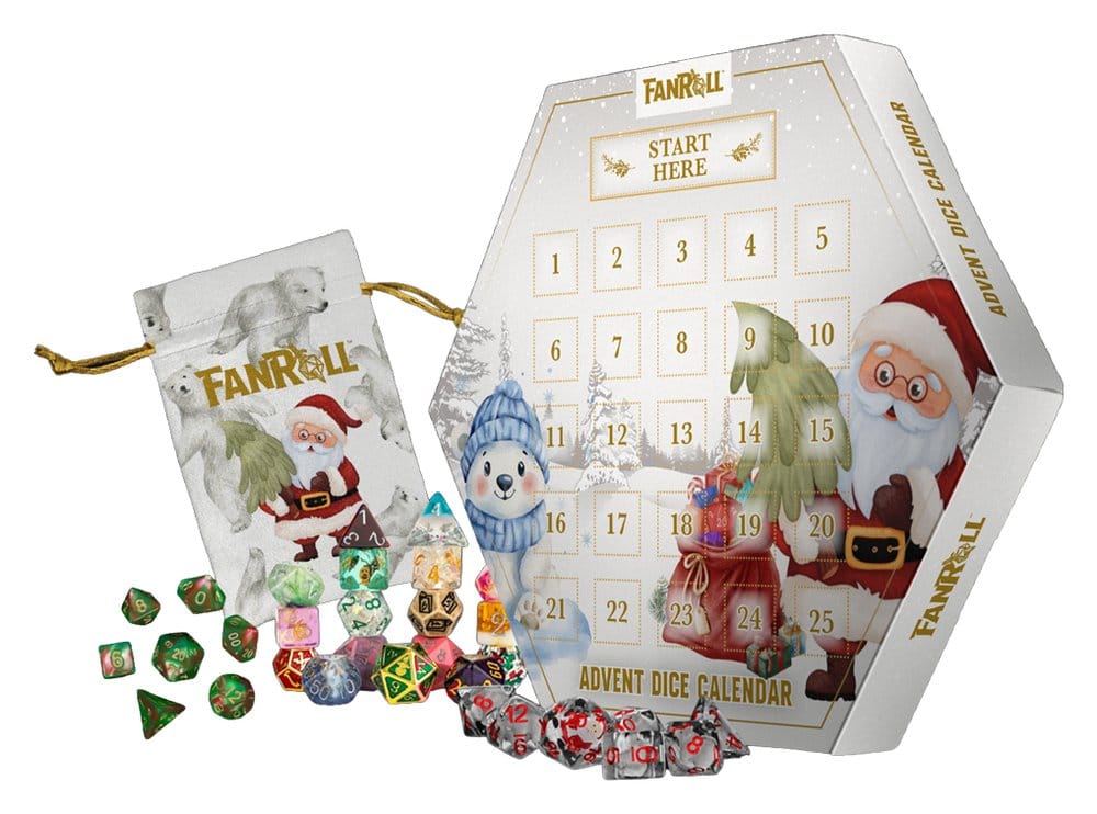 The FanRoll Advent calendar has 25 days of dice madness and includes: