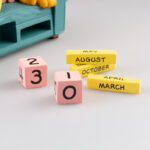 The calendar consists of 5 blocks with days and months that can be swapped and combined to create all possible dates.
