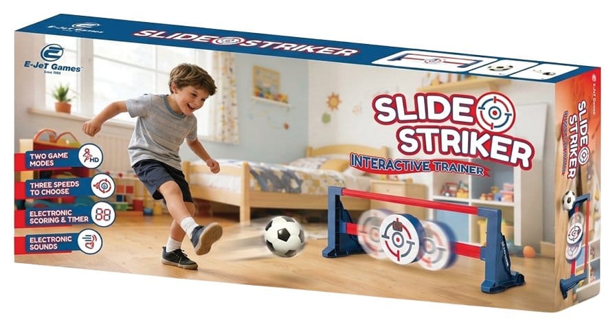 This is the Soccer Roundabout – Slide Striker from Gear2Play. It is a soccer target that moves from left to right, and you have to hit the target while it moves.