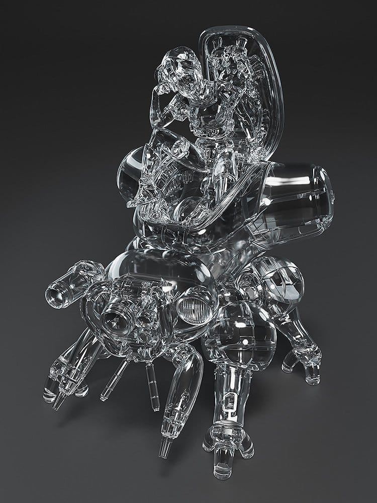 The kit includes a version of Motoko in a fixed seated position to place atop Fuchikoma, as well as an articulated Motoko you can put wherever you please. Use your imagination to create an endless number of scenes! The Thermoptic Camouflage Ver. features translucent plastic parts, making it easy to express your originality whether you assemble the figures as is or apply paint as you see fit.