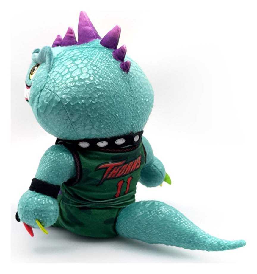 Can you hear the crowd roar? Feel the intensity of the teams?! A Roarball game must be about to kick off! Modo has pounced off the field and into Youtooz for his plush debut! Sitting at 9 inches tall and wearing purple sneakers with black flames along with a green camo Thorns uniform over his Komodo Dragon skin, dark green scales speckle his shoulders and face as a sharp toothed grin stretches under yellow eyes. With sharp purple horns creating a mohawk over his head, he’s accessorized with multicolored nails, a black armband and a gold septum piercing as a long tail relaxes behind him. This plush is packed to the seams with 100% PP cotton and is made of minky, tricot and faux lizard skin materials with accents of felt, perfect for cuddling or playing Roarball with!