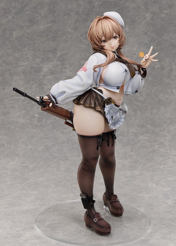 From “GODDESS OF VICTORY: NIKKE” comes a 1/4 scale figure of the Tetra Line Cooking Oil Unit member, Bready! Her eye-catching proportions have been carefully sculpted based on her character design and official illustration. Gently tilting at the waist while playfully holding a lollipop, her teasing pose faithfully captures her charm in figure form. Special attention has also been paid to the visual appearance of textures, including the clothing hugging her curvy physique and the transparency of her stockings. Her rifle, the Chewing Taste, has also been meticulously crafted, transporting you further into the world of “GODDESS OF VICTORY: NIKKE.” Be sure to add this impressively large and detailed figure of the charming Bready to your collection!