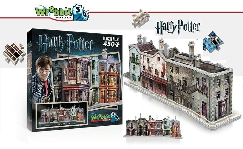 Harry Potter DIAGON ALLEY Negozi Ollivander Weasley Magia Quidditch Wrebbit Puzzle 3D 450pz 55cm Fronte e Retro