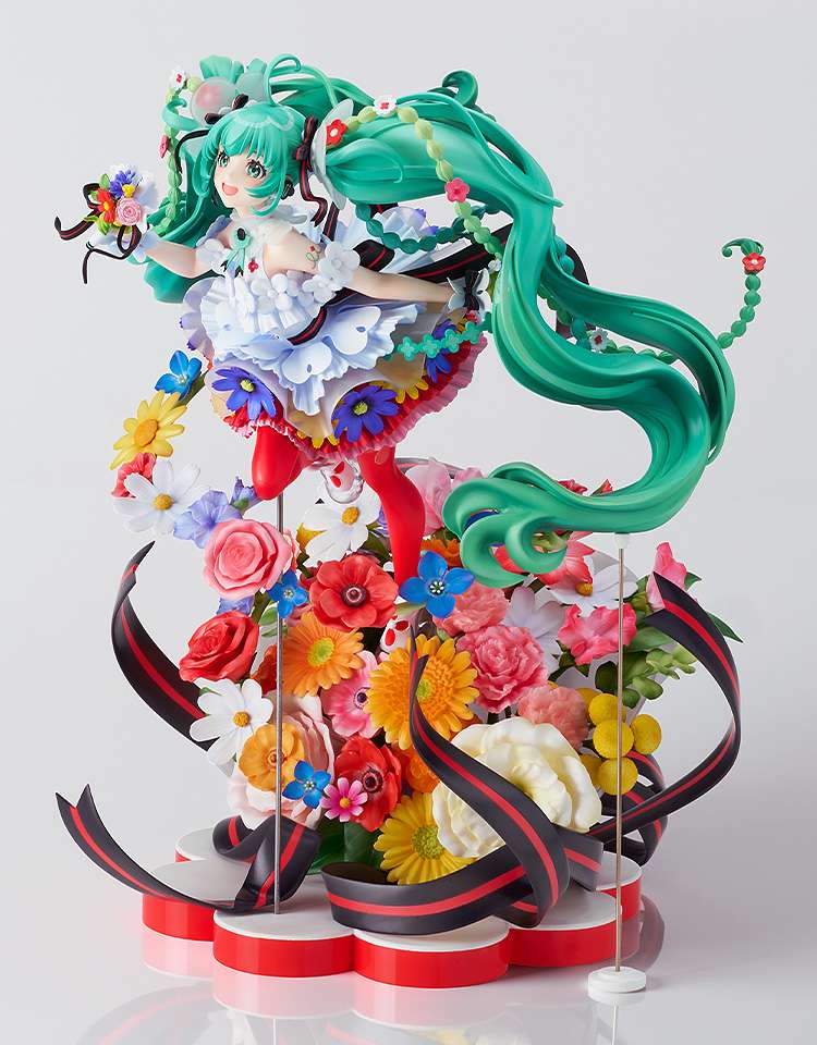 Ispirata all’illustrazione “Hatsune Miku JAPAN LIVE TOUR 2025 BLOOMING”, questa magnifica statua di Good Smle è una vera e propria esplosione floreale! Scolpita in scala 1/7, la statua misura ben 31 cm di altezza ed è perfettamente dettagliata.