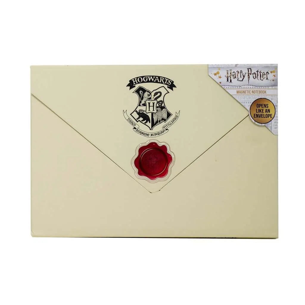 Questo non è un normale taccuino. Ha una chiusura magnetica e si apre come una busta rivelando all'interno carta a righe con il logo di Hogwarts in watermark