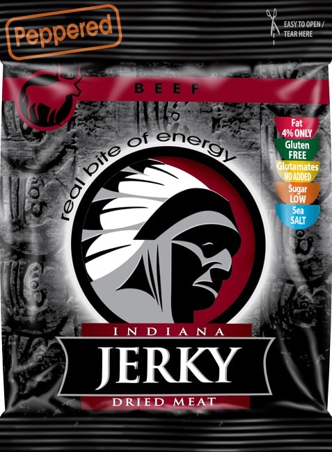 INDIANA JERKY BEEF PEPPERED Straccetti di Carne di Manzo Essiccata e Speziata 25g Senza Glutine American Snack