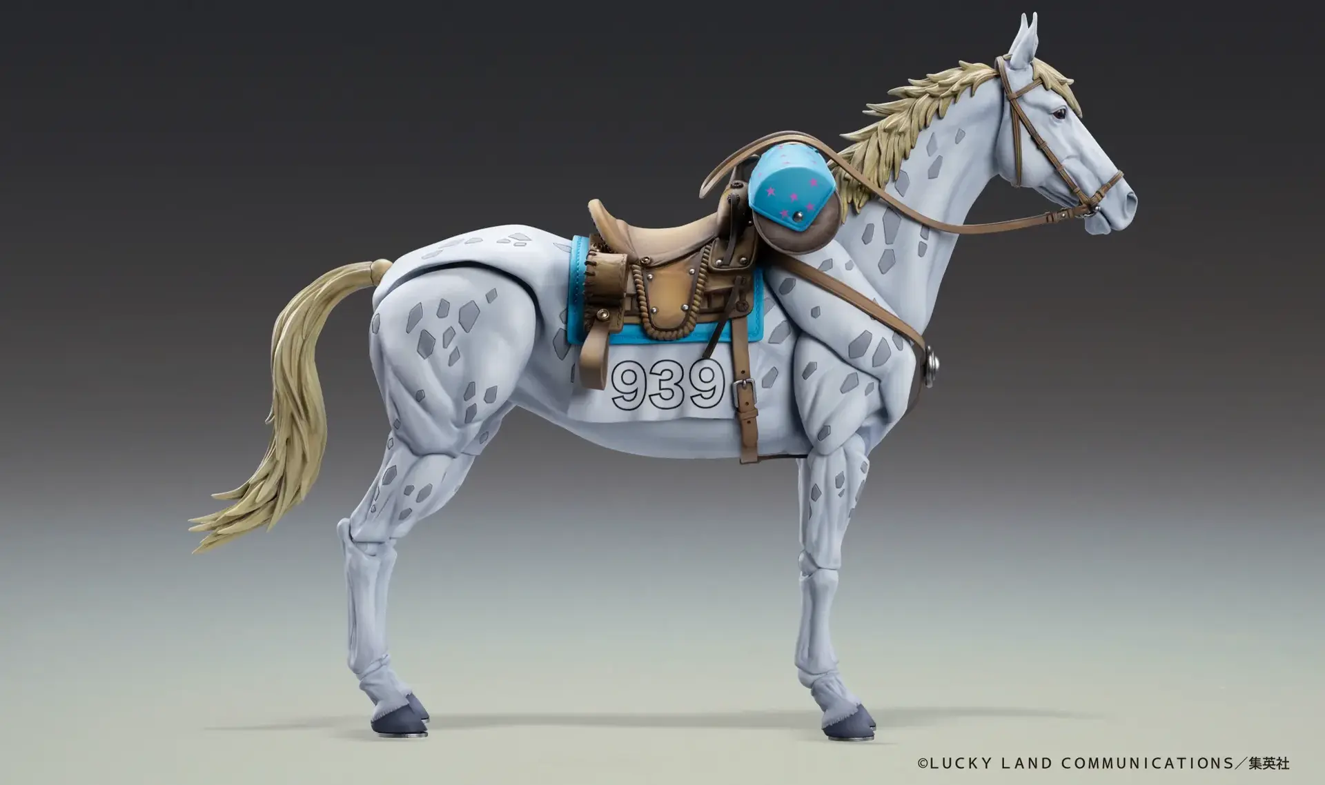 Da “JOJO’S BIZARRE ADVENTURE Part7 Steel Ball Run” arriva questa fantastica figura di Slow Dancer per la serie Super Action Statue. La figura misura circa 21cm di altezza e 33 cm di lunghezza ed è dotata di articolazioni.