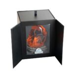 Realizzata in resina, include una modalità di illuminazione calda con un unico pulsante di controllo situato sulla base della lampada. Funziona con 2 batterie AAA da 1,5 V (non incluse) o con un cavo USB di tipo C – Ingresso 5V DC 1A (incluso). Dimensioni: 13,8 x 17,3 x 12 cm.