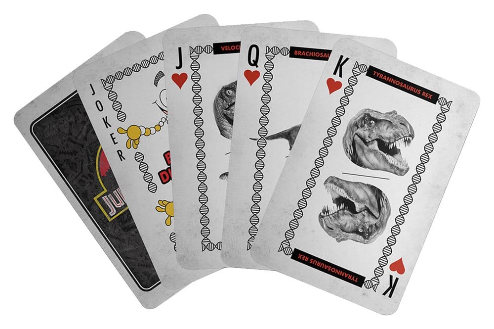 “A gift set 65 million years in the making! This dino-themed set is perfect for any budding explorer, park enthusiast, or fan of the films. Inside the gift box you’ll find a metal Jurassic Park keyring styled like an authentic park visitor pass, a Mr. DNA pin badge bringing a touch of scientific charm, and a deck of Jurassic Park playing cards featuring unique dinosaur artwork and vintage park-inspired graphics.