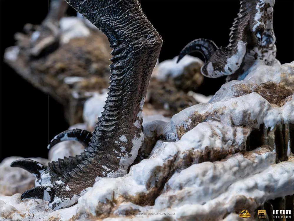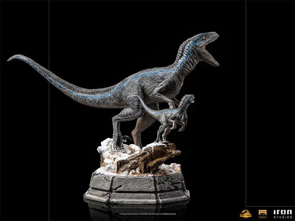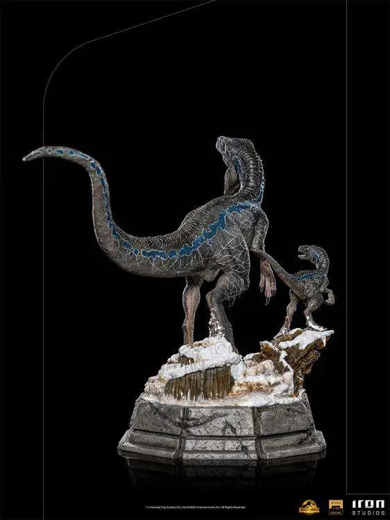 Direttamente dalla nuova pellicola "Jurassic world il dominio" arriva questa notevole statua in resina dedicata a Blue, il celebre esemplare di Velociraptor apparso nei capitoli precedenti, in compagnia però dell'adorabile progenie, Beta…che cucciolo!!