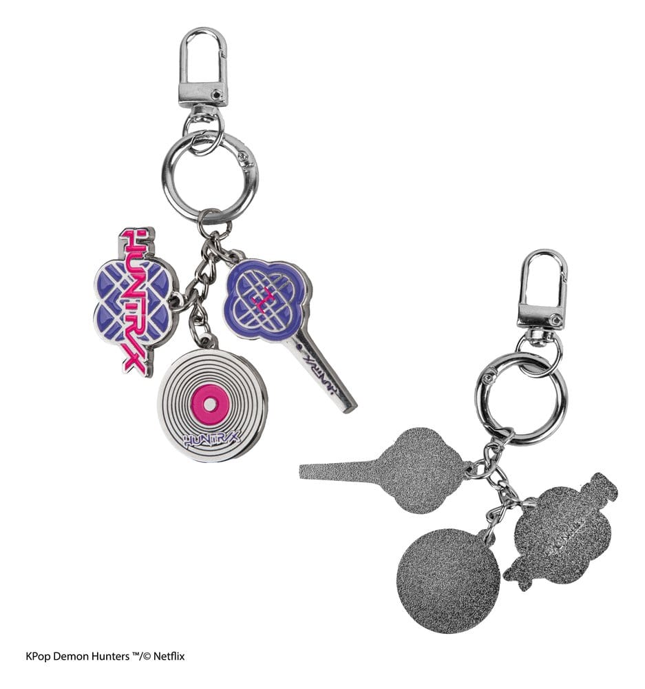 This is a charm keychain from the KPop Demon Hunters license, featuring the HUNTR/X design. Made from 100% Zinc Alloy.