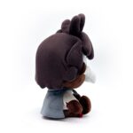 It’s time for another dark adventure and we’re here to introduce our newest hero, Low! Sitting at 9 inches tall with his bare feet kicked forward, he’s dressed in tattered brown shorts, a white t-shirt and a blue cape that’s tied around his neck. With bandages wrapping around his left hand as a winking raven mask with a pointed nose covers his face, thick brown hair pokes out from the top of his head and a red and blue anklet rests above his right foot. This plush is packed to the seams with 100% PP cotton and is made of the softest minky material, with accents of rope and pom poms, perfect for cuddling or being quiet with!