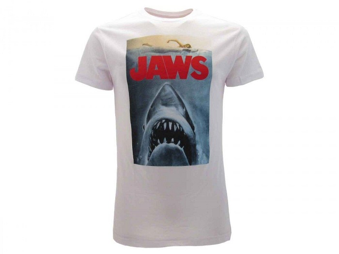 LO SQUALO – JAWS – T-Shirt Taglia M – 100% Cotone Bianco Manica Corta