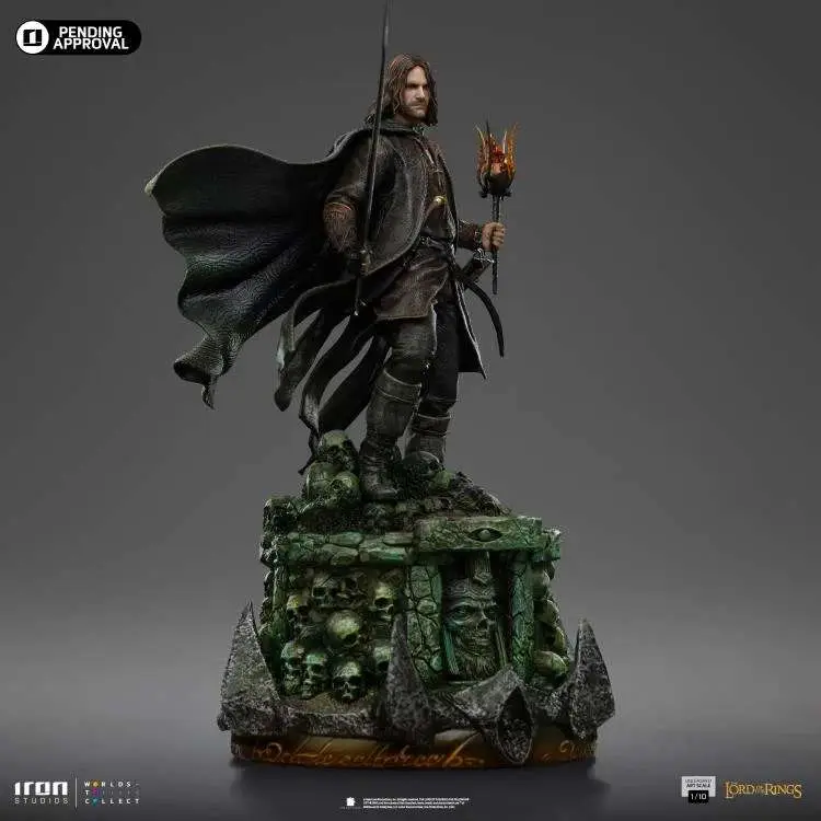L’idea dietro questa serie di resina in scala 1/10 è quella di riproporre eroi classici e celebri con un look riconoscibile ma al contempo innovativo. Dopo la Marvel e la DC arriva la “revisione” nel mondo de “il signore degli anelli”…e questo giro tocca al regale Aragorn, imortalato in una posa iconica, in bilico su una dettagliatissima base diorama…
